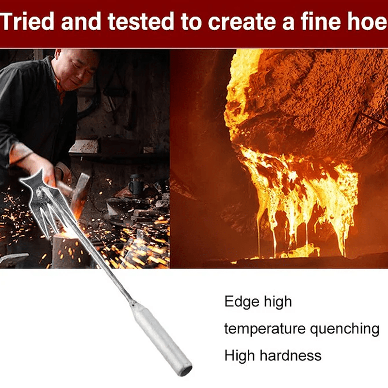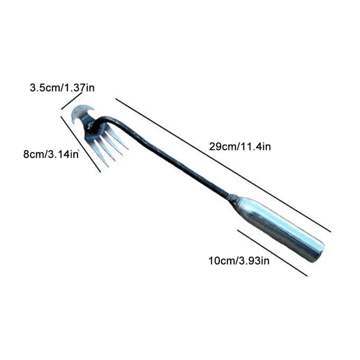 The four-tooth weeder is made of high-quality manganese steel. sharp and wear-resistant. with high hardness. and the polished surface is non-stick. It also has high impact resistance and tensile strength. Precision forged. strong and durable.